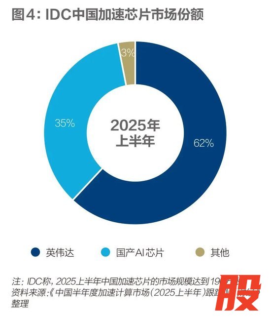 国际市场调研机构IDC 2025年10月数据显示,2025年上半年中国加速(即AI芯片)服务器市场规模达到160亿美元,同比2024年上半年增长超过1倍。2025上半年中国加速芯片市场规模超过190万张。英伟达约占62%市场份额,本土芯片约占35%市场份额。非GPU(图形处理器,即英伟达的产品)芯片需求持续增长,增长速度远超GPU。